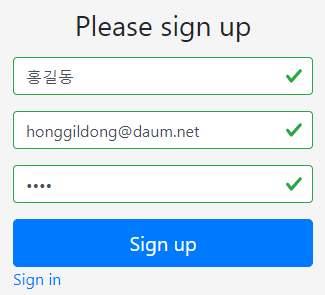 sign up 버튼을 클릭한 경우