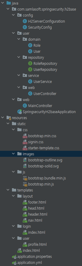 이상 h2database를 이용하여 간단하게 로그인 테스트를 해보았다. 먼저 h2databae를 이용한 로그인을 구현하기 위해서 UserDetails, GrantedAuthority의 구현체인 User, Role엔티티를 작성하고, JpaRepository를 상속받는 UserRepostiry, RoleReposity를 작성한다. 그리고 로그인시 user 정보를 가져올 UserDetailsService 인터페이스를 구현한 UserService를 작성해서 로그인시 유저정보과 권한정보를 가져올수 있게 한다. 그런 다음 메인페이지, 로그인페이지, 유저정보 페이지를 작성하고 정상적으로 로그인되는 테스트한다.