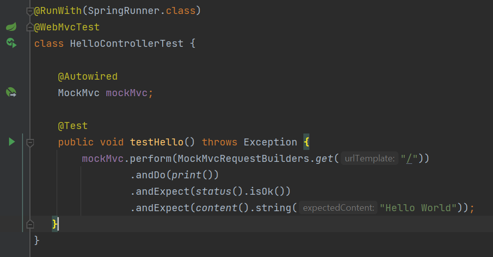 에디터에서 @Test옆에 실행아이콘을 클릭